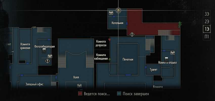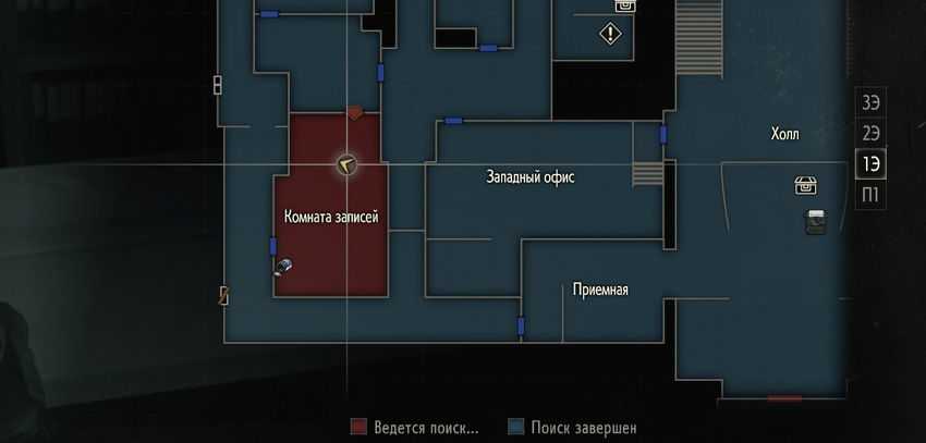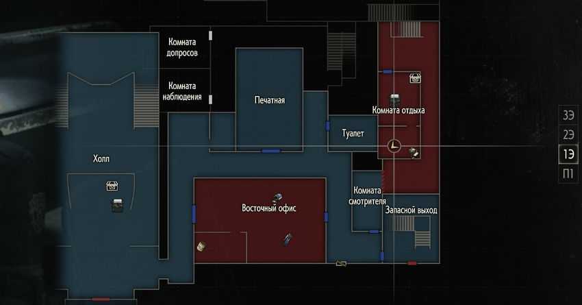 На рисунке выше показано расположение сейфа — это небольшая комната в Западном офисе на первом этаже полицейского участка. Вы можете посетить это место в первый раз вскоре после использования переключателя в Холле.