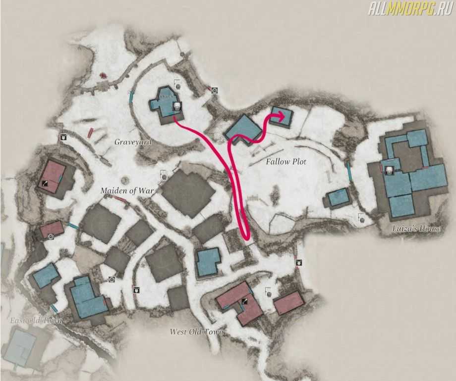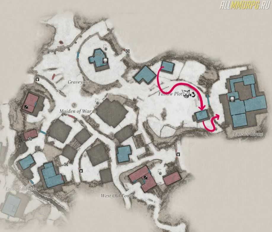Спустившись с лестницы в сторону делянки под паром, найдите перед собой стог с сеном. Пройдите мимо него, подберите порох и поверните направо. Двигайтесь в сторону восточной части Старого города. Там вы найдете ржавые обломки.