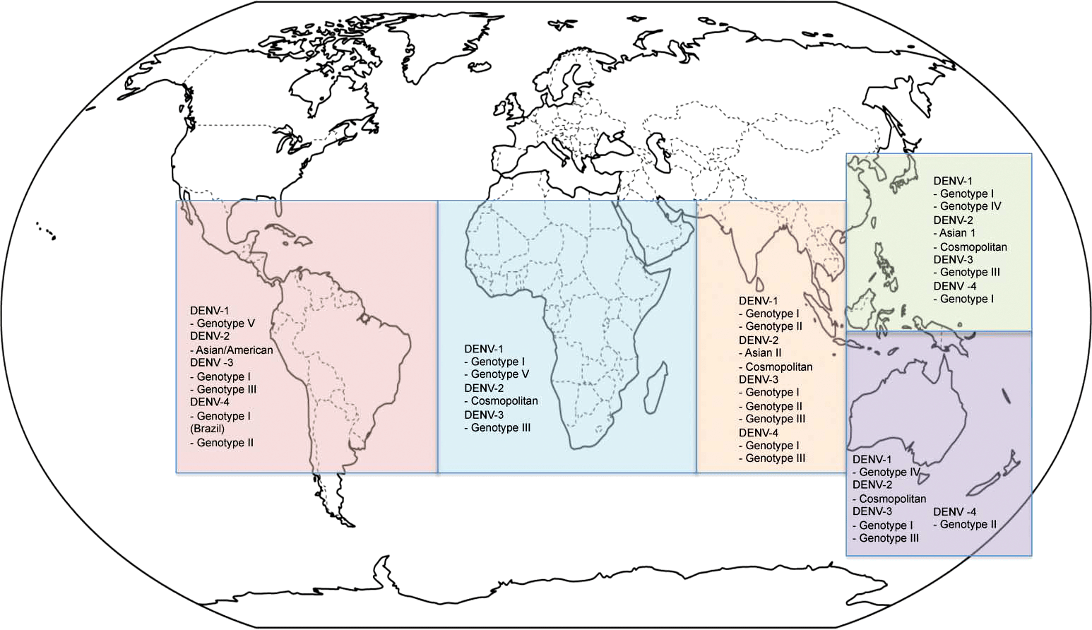 У вируса денге выделяют четыре серотипа, то есть четыре группы вирусов с общей антигенной структурой. Генотипов у этого возбудителя больше, соответственно, и отслеживать их сложнее. Увы, но знания серотипа порой недостаточно для качественной вакцинации. Например, низкую эффективность одной из проходивших клинические исследования вакцин против серотипа 2 можно объяснить большой вариативностью составляющих его генотипов .