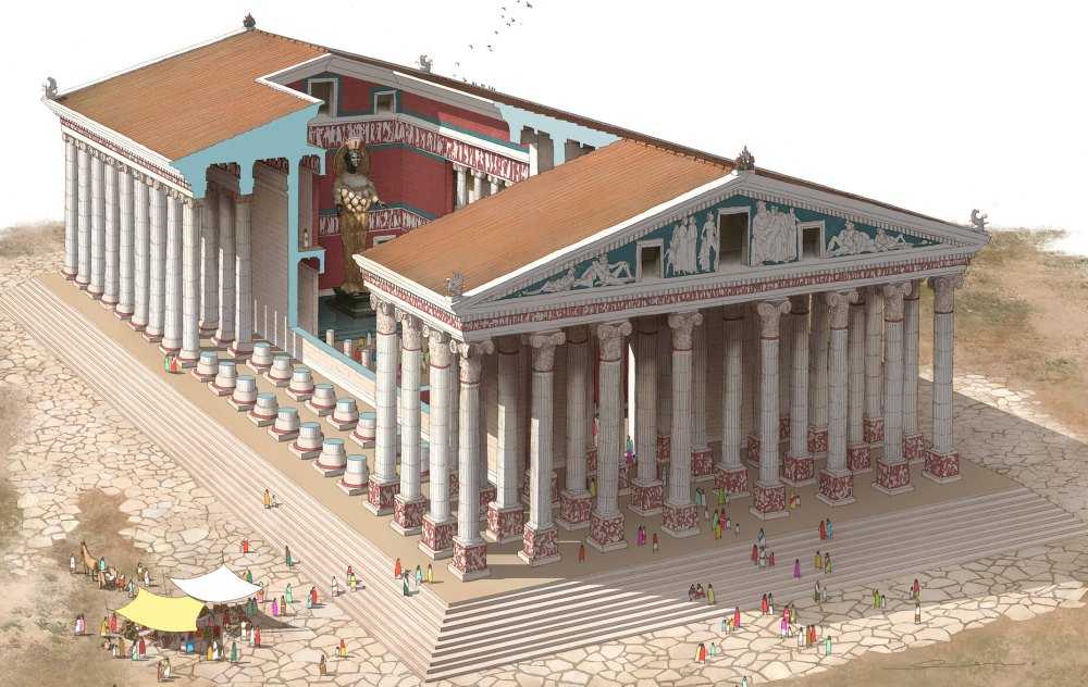 Изящное мраморное сооружение привело в восторг и удивление горожан. Самое крупное святилище древнего мира диной 110 и шириной 55 метров украшали скульптуры и барельефы, созданные прославленными мастерами тех времен.