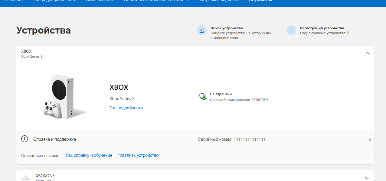Для этого заходим в свою учетную запись в раздел устройства и регистрируем консоль по серийному номеру.