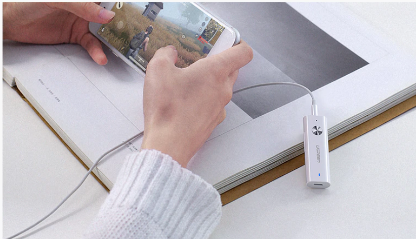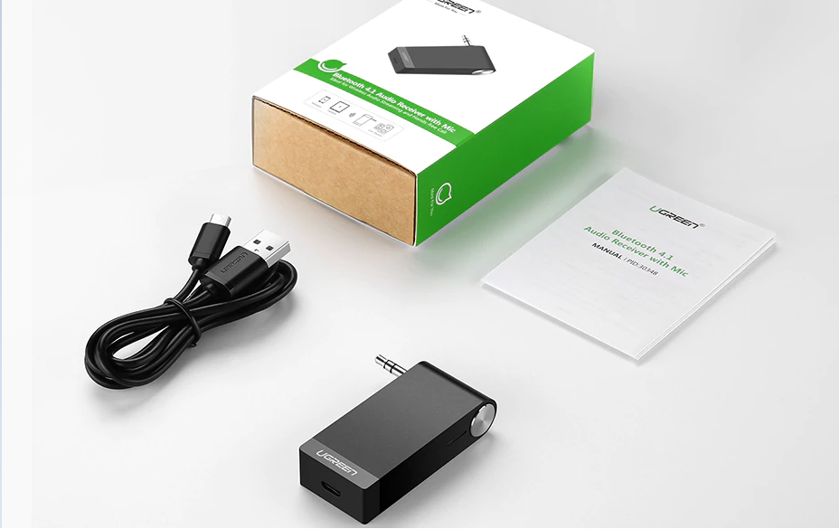 7. Еще одна модель беспроводного Bluetooth приемника с APT-X — это ресивер UGREEN Bluetooth 5.0 CM110. Обеспечивает до 5 часов работы в источника звука для наушников, автомагнитолы или акустической системы. Может работать как адаптер для голосовой связи. Для подключения наушников используется джек 3.5 мм.