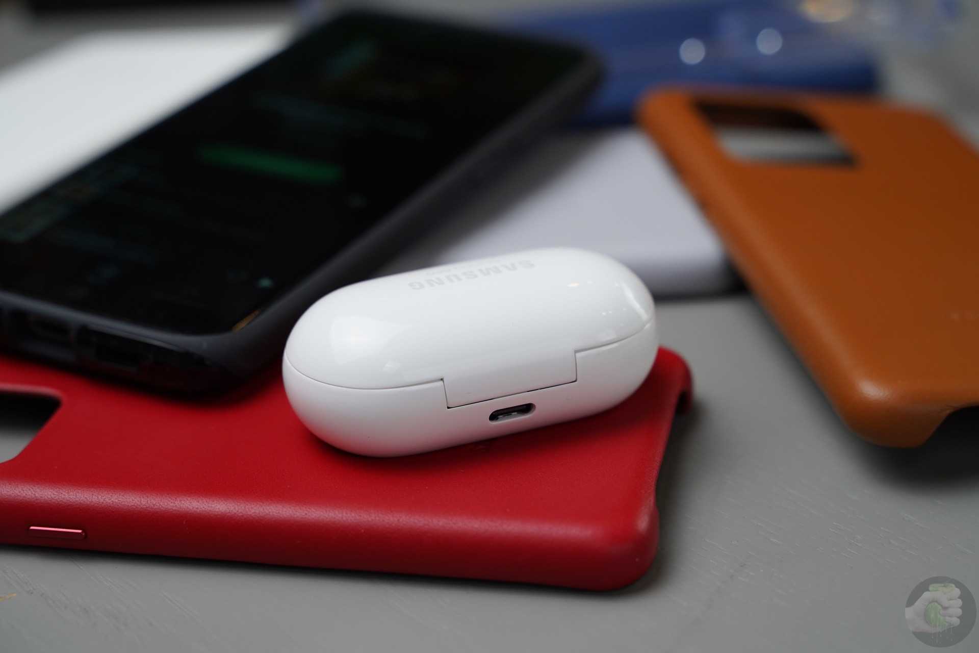 Заряжается чехол через USB Type-C, кабель прилагается в комплекте. Также можно использовать беспроводную зарядку, как видите, предусмотрены все возможности. Если времени впритык, а Galaxy Buds+ нужно срочно зарядить, можно использовать быструю зарядку: всего три минуты в чехле позволят наушникам играть музыку целый час.