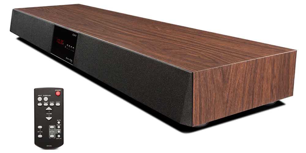 Завершает рейтинг ещё один саундбар премиум-сегмента марки CAV. Выполнен из дерева в ретростиле, смотрится великолепно. Звучит ещё лучше. Оснащён 6 динамиками и 2 сабвуферами. Общая мощность — 150 Вт. Поддерживается технология создания пространственного звука SRS. Есть дисплей, управляется с пульта. Имеет оптический и коаксиальный входы, RCA. Работает и по Bluetooth. Установка — напольная/настенная. Цена — 18700 рублей.