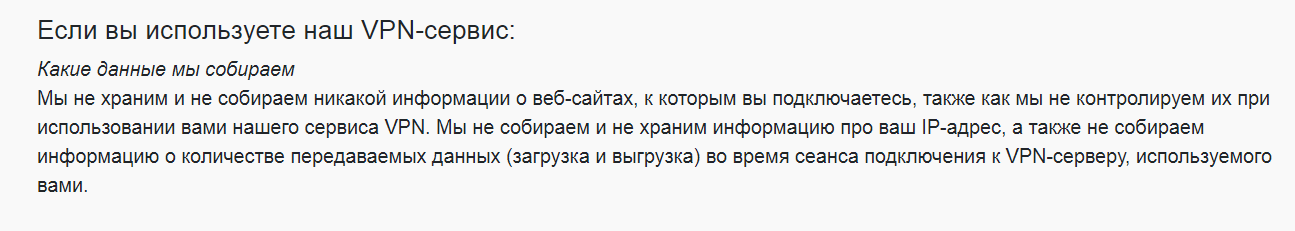 Что делать? Прежде всего внимательно читать Политику конфиденциальности выбранного вами впн-сервиса. Ознакомьтесь с тем, какие данные о вас он сохраняет — логов там быть не должно.