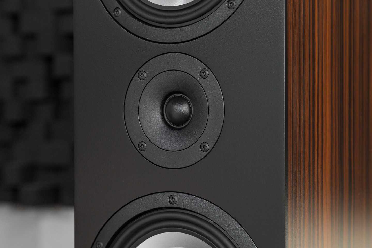 Высокочастотный динамик расположен между средне- и низкочастотной секцией на уровне уха