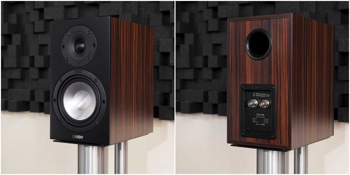 Модель GLE 426 — это полноценные полочные колонки в корпусах фазоинвертерного типа с двумя динамиками — мидвуфером диаметром 160 мм и твитером диаметром 25 мм, нагруженным на небольшой рупор. Как и у GLE 496, отверстия фазоинвертеров выведены на заднюю панель, что, безусловно, следует учесть на этапе инсталляции.