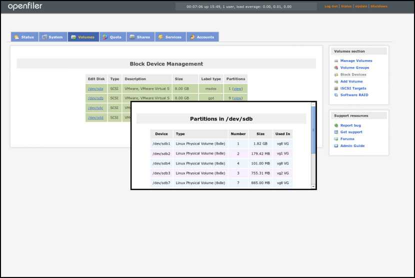 Openfiler предоставляет ключевые функции, такие как цель iSCSI для виртуализации, поддержка цели Fibre Channel, репликация на уровне блоков и высокая доступность, которые являются основой любой критически важной для бизнеса среды хранения. Openfiler решает все ключевые проблемы хранения данных: