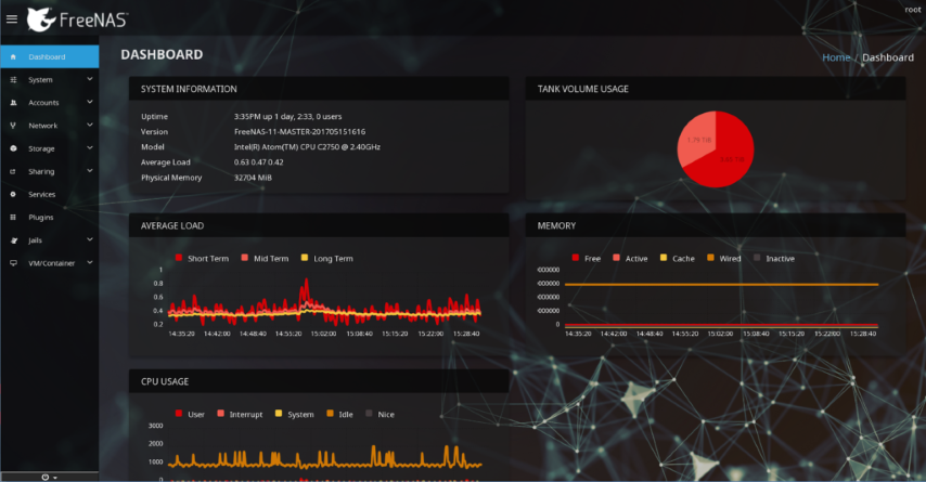 FreeNAS имеет функции, которые вы найдете в устройствах NAS уровня предприятия, такие как моментальные снимки данных и практически неограниченные ограничения хранения. Независимо от вашего управления дисками, FreeNAS поддерживает его; RAID, горячая замена и чередование дисков поддерживаются в операционной системе.