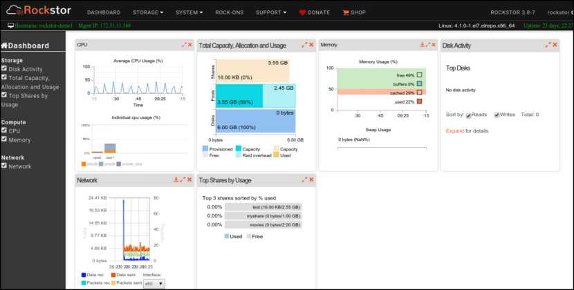 Хотите добавить другие функции? FreeNAS поддерживает сторонние плагины для дальнейшего расширения возможностей вашего NAS. Вы даже можете управлять виртуальными машинами и контейнерами Docker через веб-интерфейс FreeNAS, чтобы превратить его в сервер. Веб-интерфейс не сложен в использовании благодаря четкой разбивке функций, и он является самым современным из трех.
