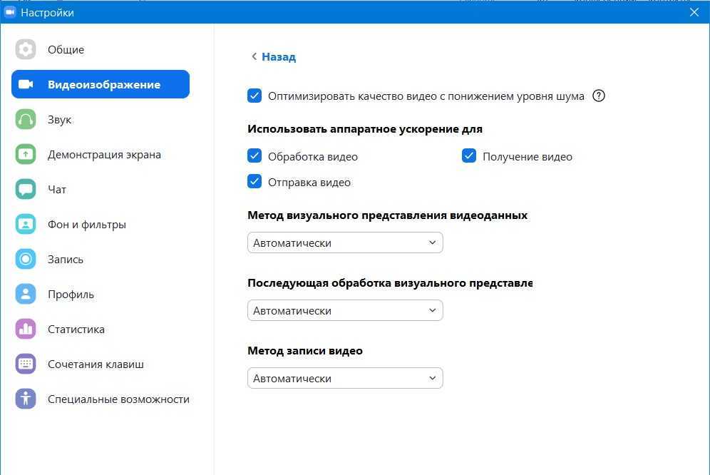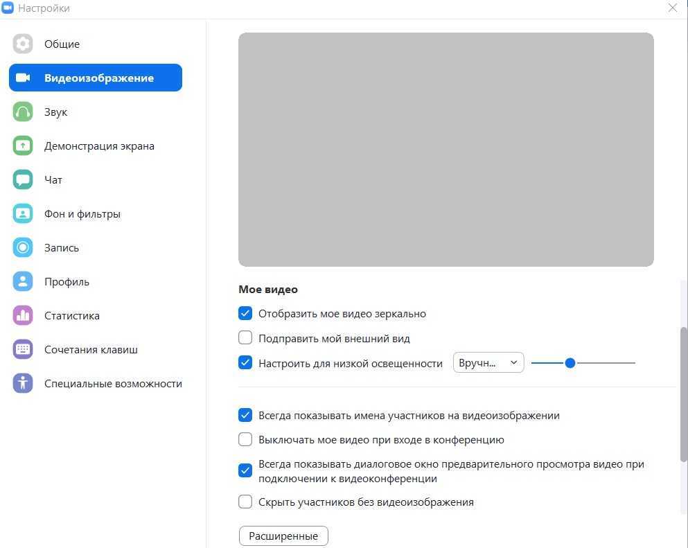 Расширенные настройки видео в Zoom