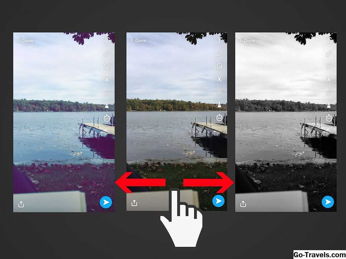 Используйте свой палец для проведите пальцем влево или вправо вдоль экрана для прокрутки по горизонтали через различные доступные фильтры. Вы можете продолжать прокручивать, чтобы увидеть, что каждый из них выглядит индивидуально, поскольку они применяются к вашей привязке.