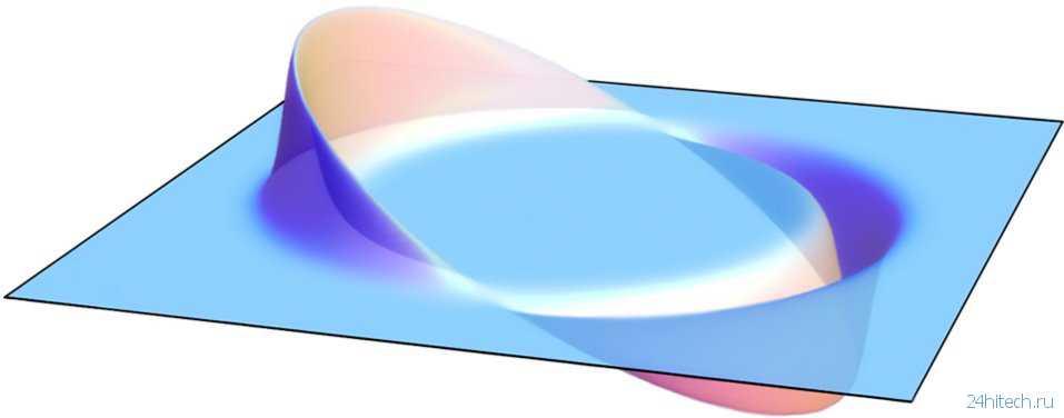 Иллюстрация варп-поля, создаваемого теоретическим устройством «Двигатель Алькубьерре». Находящийся внутри поля космический корабль сможет двигаться быстрее скорости света за счет «сжатия» ткани пространства перед ним и «разворачиванием» пространства позади