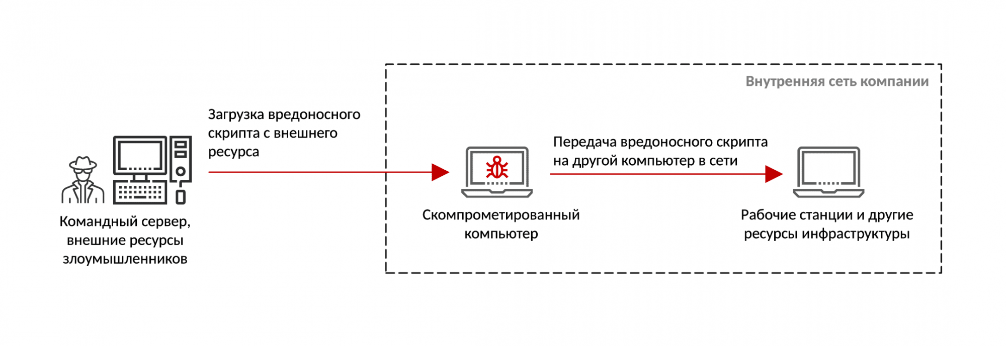 Рисунок 14. Схема загрузки вредоносного скрипта с внешнего ресурса на скомпрометированный компьютер сети