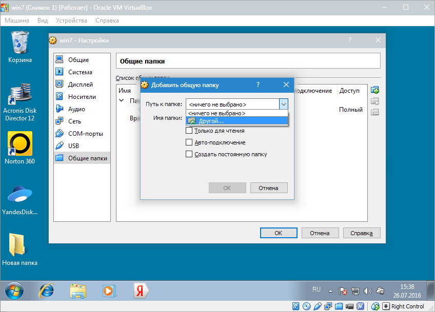 Для более комфортного управления виртуальной ОС, запущенной в VirtualBox, существует возможность создания общих папок. Они одинаково доступны из хостовой и гостевой систем и предназначены для удобного обмена данными между ними.