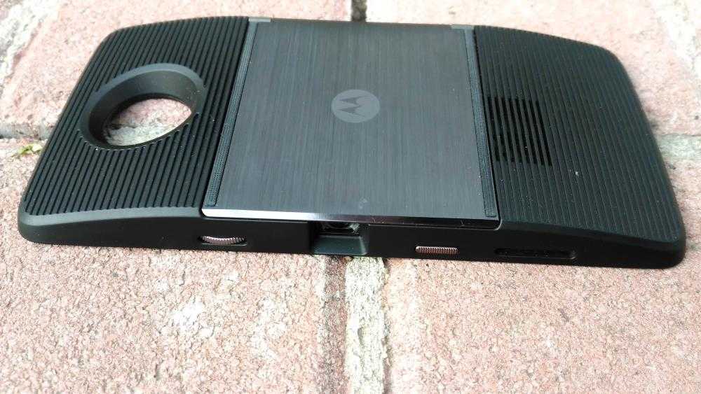 Присоединять модули к Moto Z — одно удовольствие. Магниты плюс особая структура пружинящих штекеров плюс возможность менять их на лету делает процесс работы с модами очень лёгким и приятным. К снятию модулей, впрочем, нужно привыкать, так как магниты держат их железно, и ногтём за специальную выемку поддевать чревато — вплоть до сломанного ногтя. Часть модов это учитывает в конструкции корпуса, с остальными просто приходится учиться работать. Больше всего проблем мне доставил, как ни странно, модуль Insipio, но на нём же я научился правильно поддевать модули — не по центру выемки, а с самого краю, так они снимаются действительно легче.