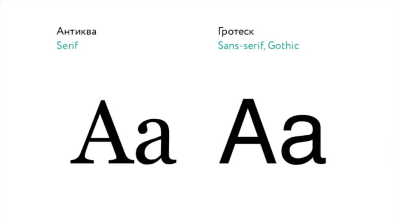 Гротеск — более современный шрифт без засечек. Читается легче и быстрее антиквы.