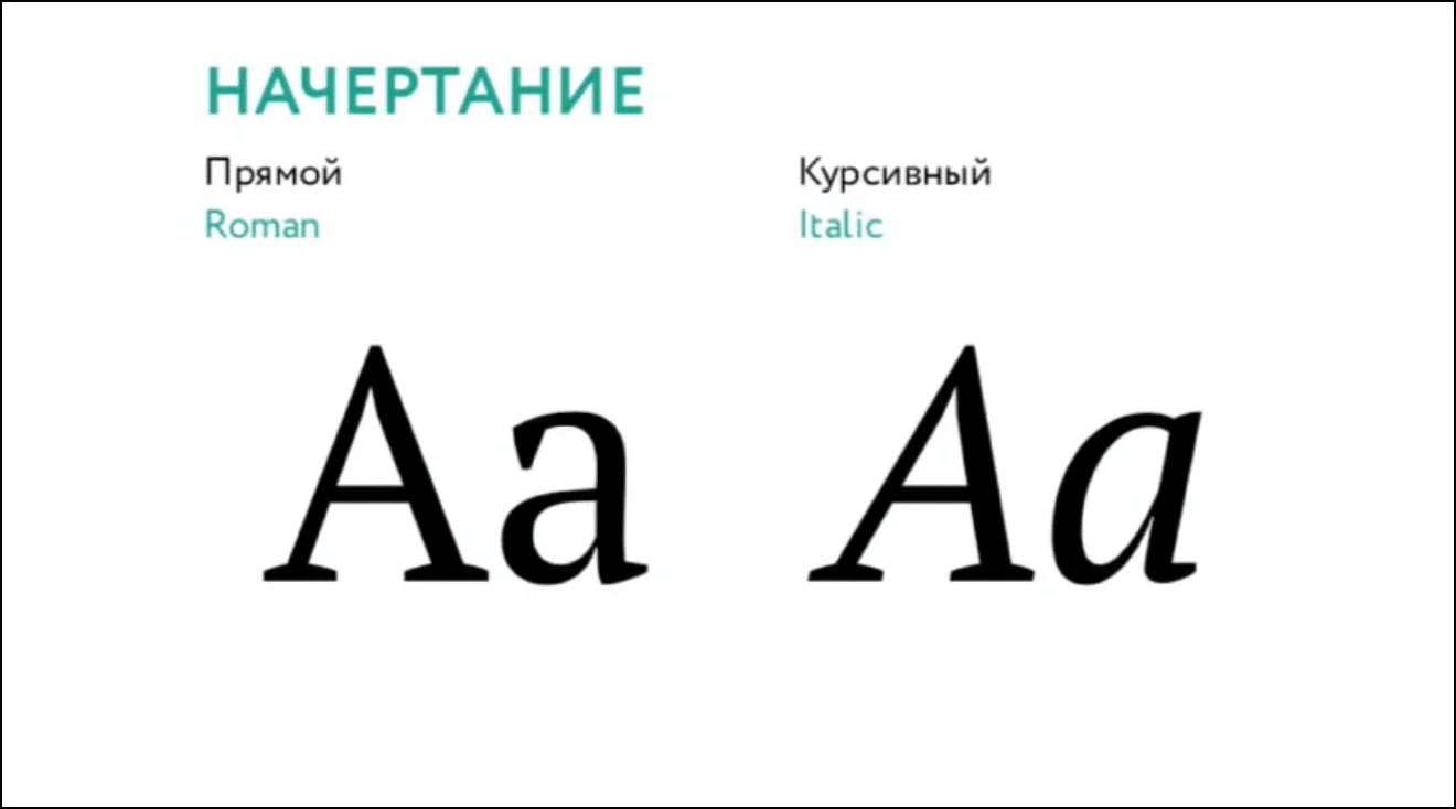 Прямое начертание — это классический машинописный шрифт.