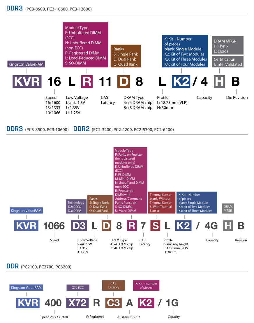 На сайте многих производителей памяти можно изучить, как читается их Part Number.