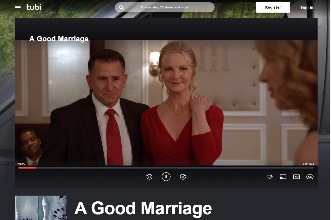 Некоторые примеры бесплатных фильмов, которые вы можете посмотреть в Tubi, включают «Один выстрел», «Неудачный запуск», «Загадочная история Бенджамина Баттона», «Прибытие в дом», «Клоун» и «Хороший брак».