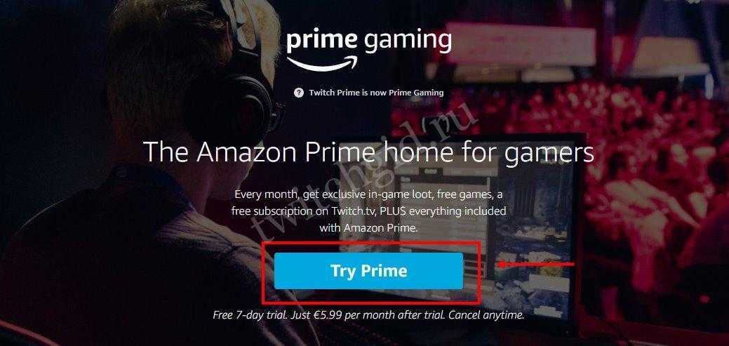 - Кликайте по иконке «Try Prime Gaming» посередине главной страницы;