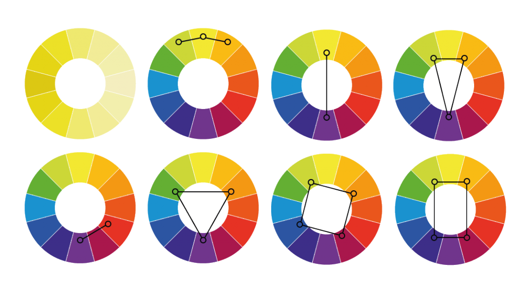Цветная фотография изначально подражала живописи, поэтому большинство приёмов, композиционные решения и работа с цветом были взяты именно у художников. В фотографии, как и в живописи, принято использовать шесть основных цветовых схем: