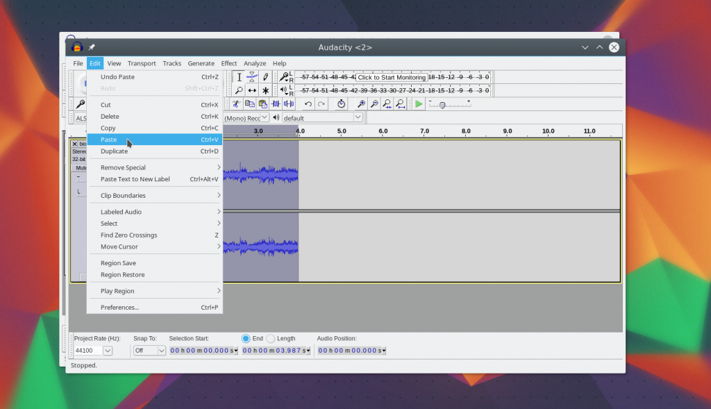 Импортируйте аудиодорожку, которую вы хотите растянуть, в Audacity, используя или Ctrl Alt I.