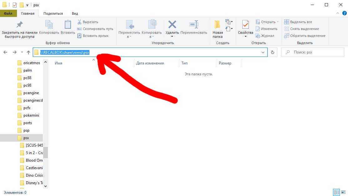 Откроется папка share. Войдите в нее, а затем откройте папку roms. Вы увидите множество папок, названия которых соответствуют консолям, игры к которым они содержат. К примеру, если вы хотите добавить игру для PS One, то вам понадобится папка psx. Перекиньте туда образ с игрой и дождитесь окончания копирования файлов