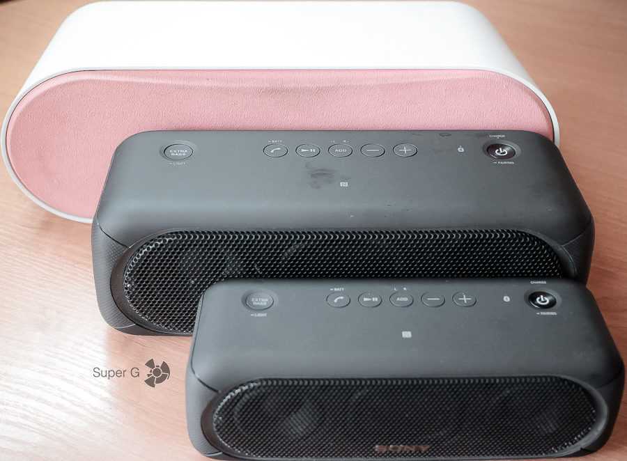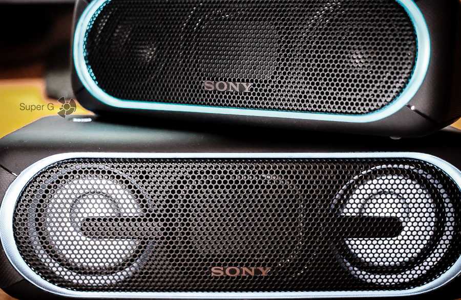 Вот, кстати, пример работы подсветки: слева показана Sony SRS-XB40, справа — Sony SRS-XB30.