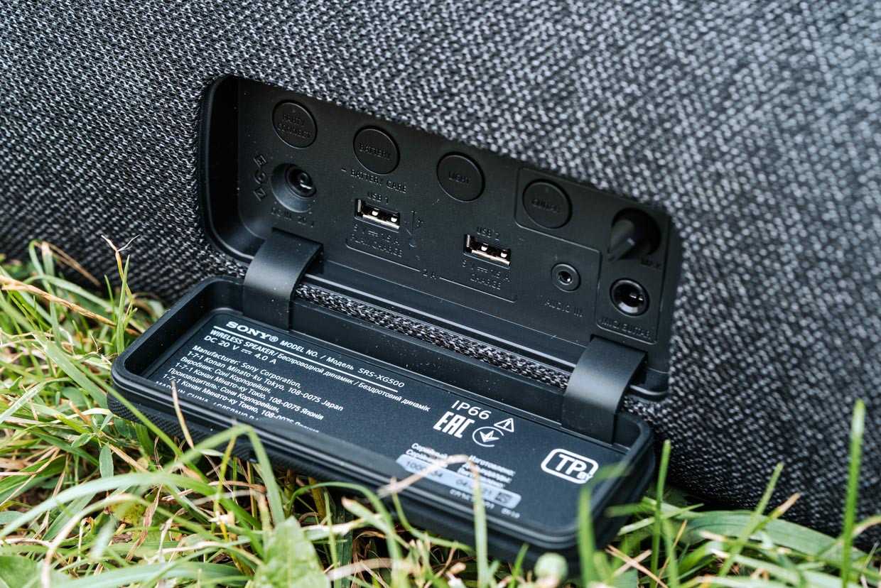 Несмотря на обитую ткань, колонка защищена от воды и пыли по стандарту IP66. Её нельзя погружать в воду, но она спокойно выдержит, например, полив из шланга под высоким давлением или дождь.