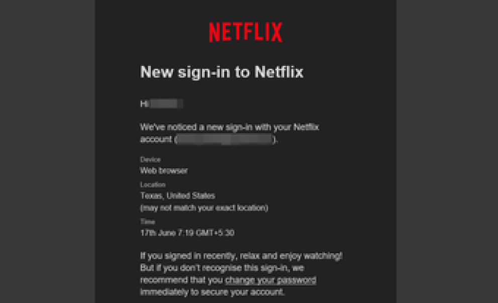В то же время вы можете следить за электронными письмами от Netflix. Netflix обычно отправляет вам электронное письмо, когда обнаруживает новый вход в вашу учетную запись.