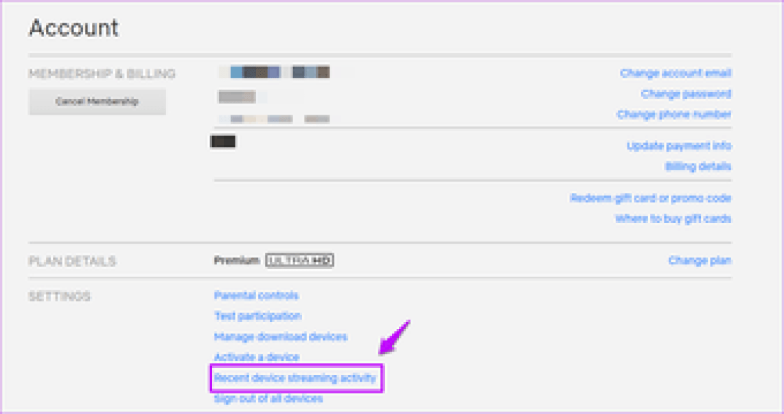 Шаг 2: Затем нажмите на опцию Недавняя потоковая передача устройств, чтобы увидеть все входы в вашу учетную запись Netflix.