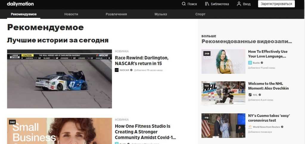 Формат ресурса близок YouTube, реклама перед видео тоже в порядке вещей, поэтому от стандартной навигации вам не придётся отвыкать. Большое преимущество DailyMotion: здесь доступно множество видео, заблокированных на YouTube.