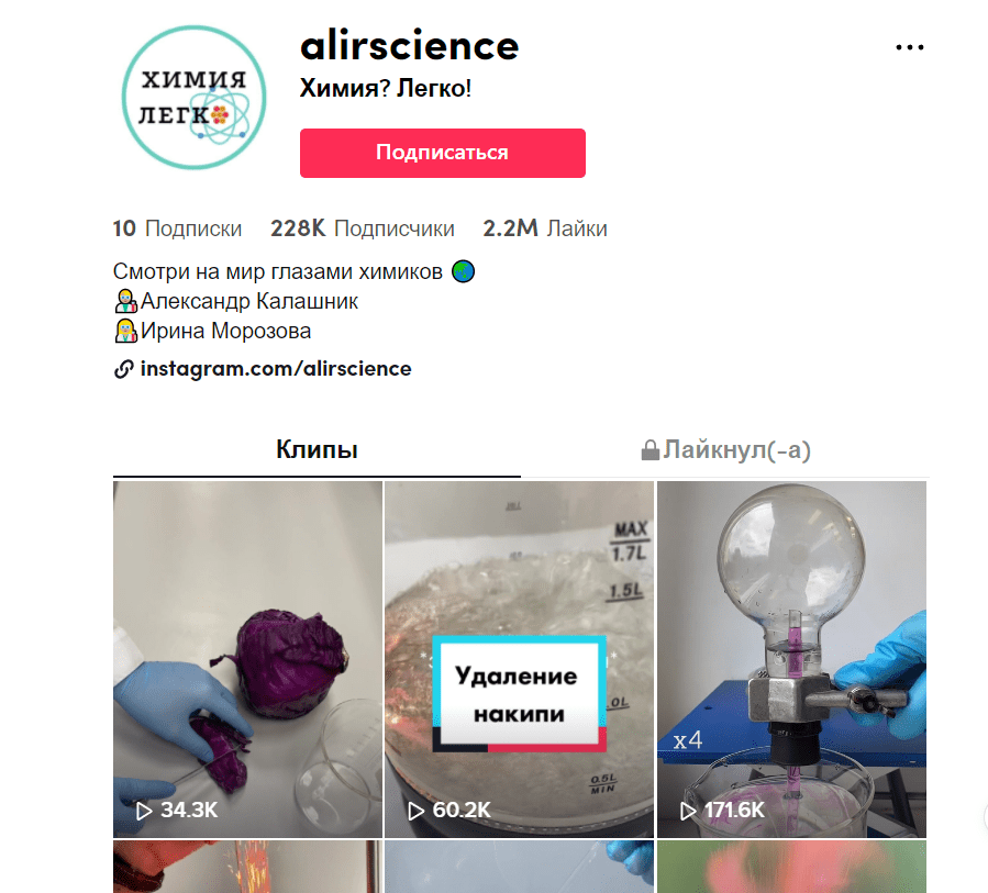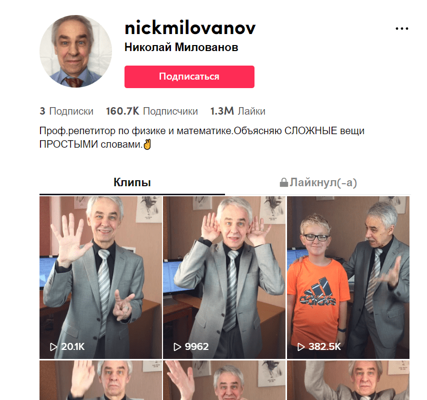 Аккаунт прекрасного преподавателя, который просто и весело рассказывает о сложных вопросах. Читает стихи про атомы, логарифмы, давление насыщенного пара при кипении, магнитные поля и другие физические и математические темы.