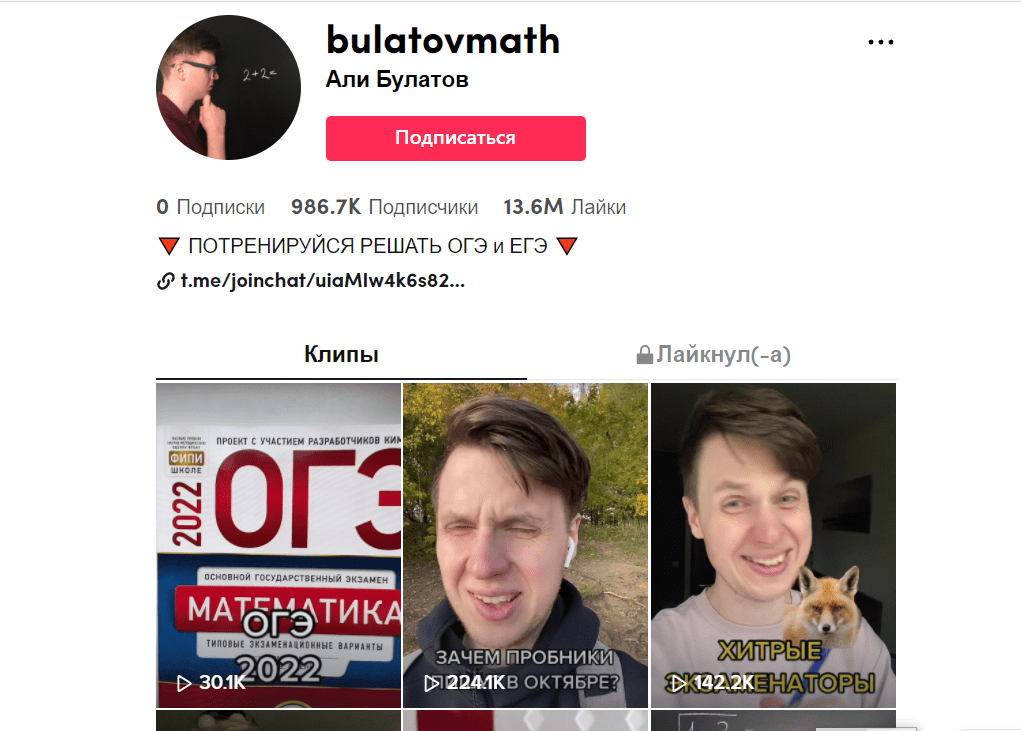 На этом канале автор собирает математические лайфхаки. Например, как считать проценты за секунды, перевернув их. Задачи автор решает в простой тетрадке. Кроме этого, он отвечает на вопросы из директа, поэтому можно прислать ему свой «неразрешимый» пример.