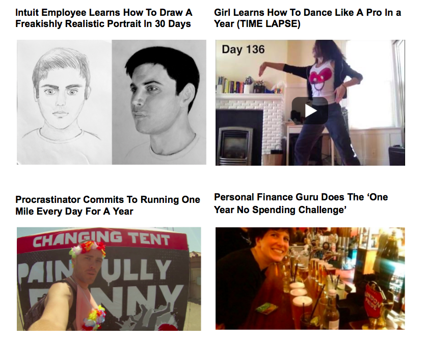 Предприниматель Джиа Джианг провел эксперимент «100 дней отказов», который отучил его от боязни услышать «нет». Каждый день он заставлял себя делать какие-либо социально-неловкие вещи, например, спрашивал у незнакомого человека разрешения поиграть в футбол на заднем дворе его дома. При этом Джиа снимал свою реакцию на видео. Журналист Элизабет Гилберт бросила работу и мужа и отправилась в годовое кругосветное путешествие в поисках себя. Она написала про свой эксперимент книгу, которая стала бестселлером и потом легла в основу популярного фильма «Ешь, молись, люби». Еще один пример — молодой предприниматель Ари Мейсел, который с помощью данных и экспериментов смог излечиться от болезни Крона, которую доктора считали неизлечимой.