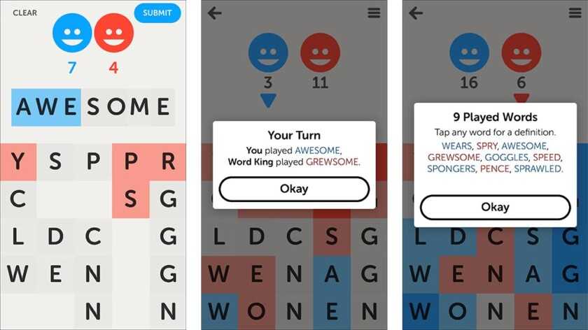 Letterpress – еще одна уникальная игра-головоломка со словами. Это что-то вроде более насыщенной версии Boggle. Вы с другим игроком идете лицом к лицу с сеткой букв пять на пять. Когда вы создаете слова, каждая буква заполняется вашим цветом. Игра заканчивается, когда вы заполняете каждую букву цветом. Там есть некоторые правила, но на самом деле это довольно сложная игра. Вы можете играть с другими людьми или с одним из четырех ботов. В игре также есть некоторые из самых простых рекламных объявлений, которые мы когда-либо видели, поддержка Оксфордского словаря, плохие слова и даже множество статистических данных для отслеживания вашей игры. Пользовательский интерфейс очень простой, но игра на удивление увлекательна. Мы определенно рекомендуем это. Это определенно одна из лучших бесплатных словесных игр.