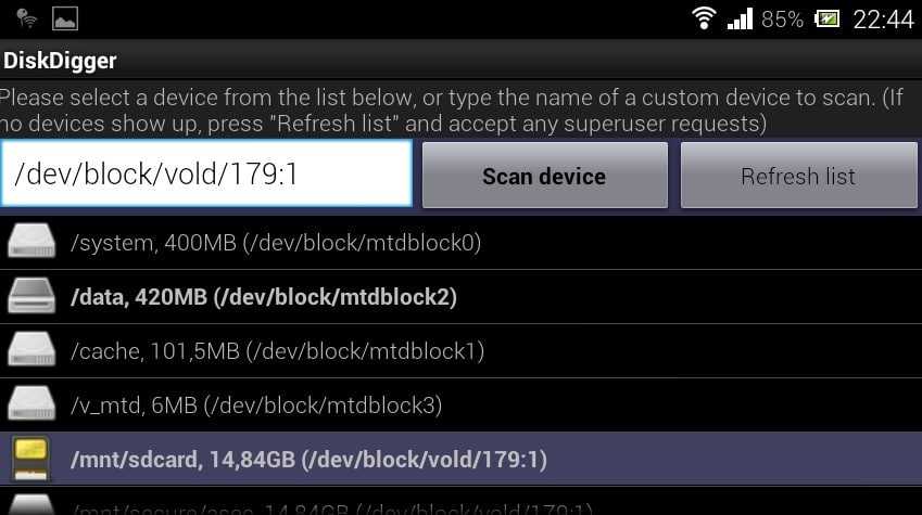- Сканирование памяти смартфона и восстановление данных с нее. Работает не всегда, но часто. Достаточно подключить телефон в режиме накопителя к компьютеру и запустить сканирование программой Recuva или использовать приложения Android Wondershare Dr.Fone for Android или DiskDigger. Возможно, они найдут удаленную историю и помогут ее вернуть.