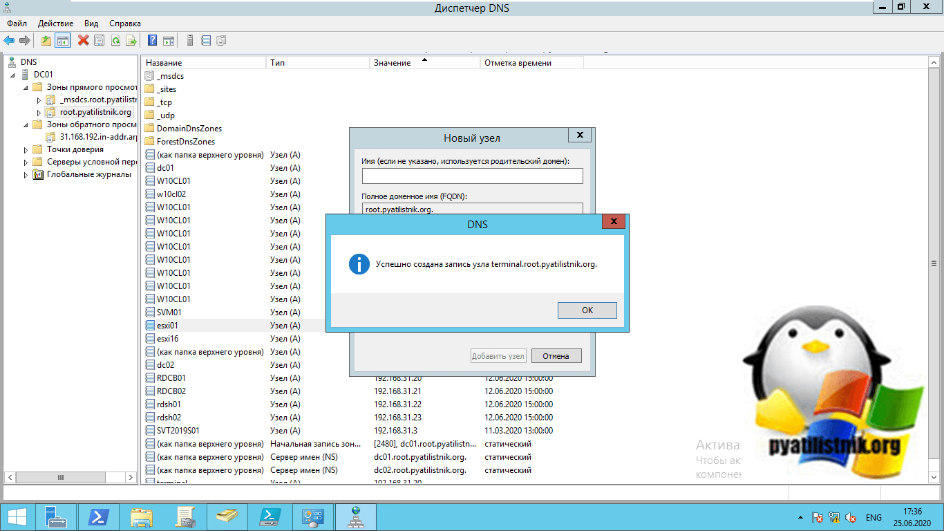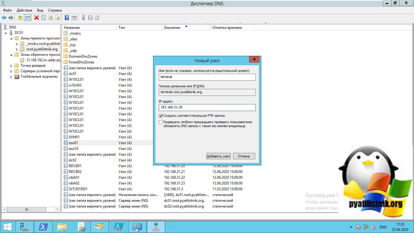 В запись terminal.root.pyatilistnik.org успешно создана.