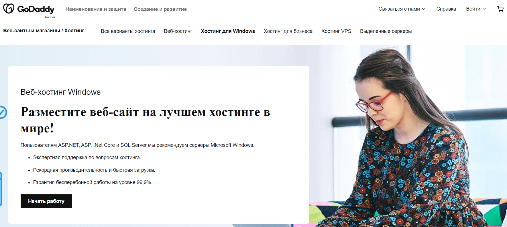 Компания GoDaddy – всемирно известный хостинг, обеспечивающий хорошее базовое обслуживание