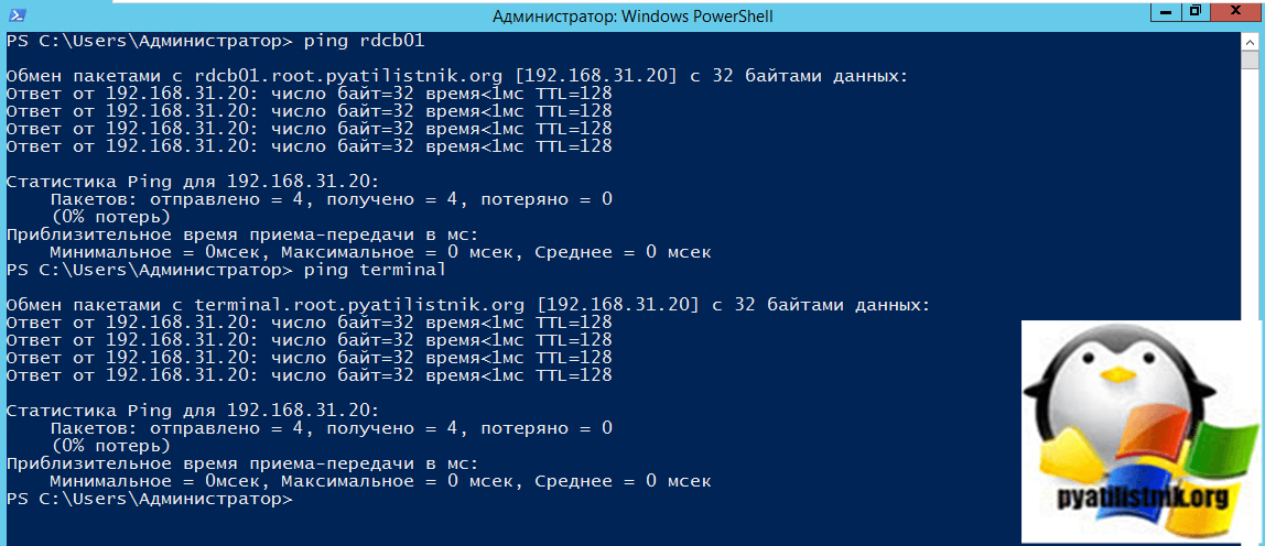 Как видите нам ответил rdcb01.root.pyatilistnik.org