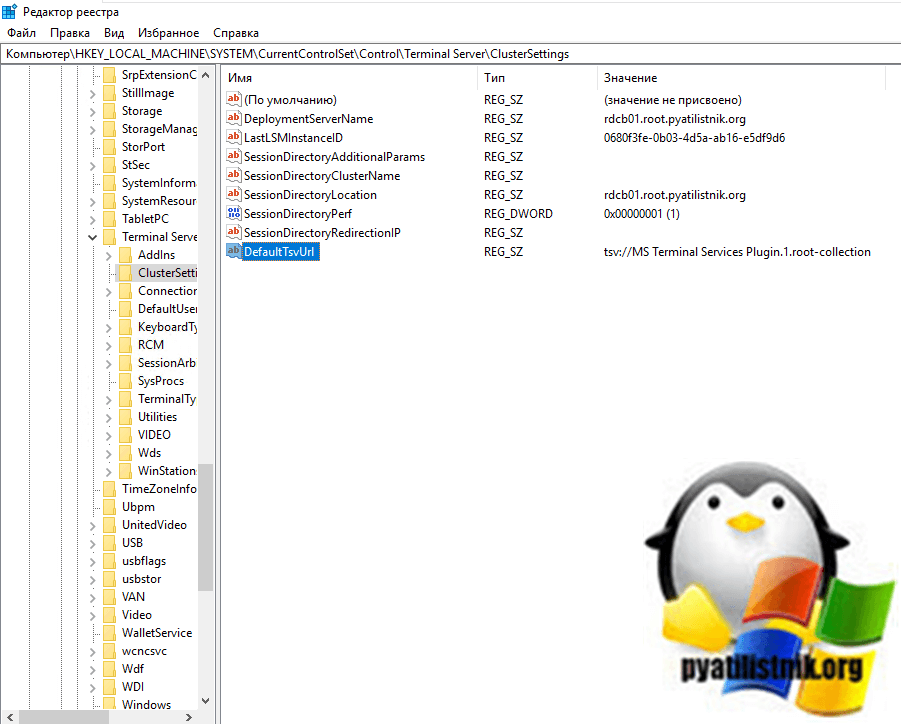 Переходим на сервер с ролью RD COnnection Broker и открываем реестр Windows. Переходим в раздел: