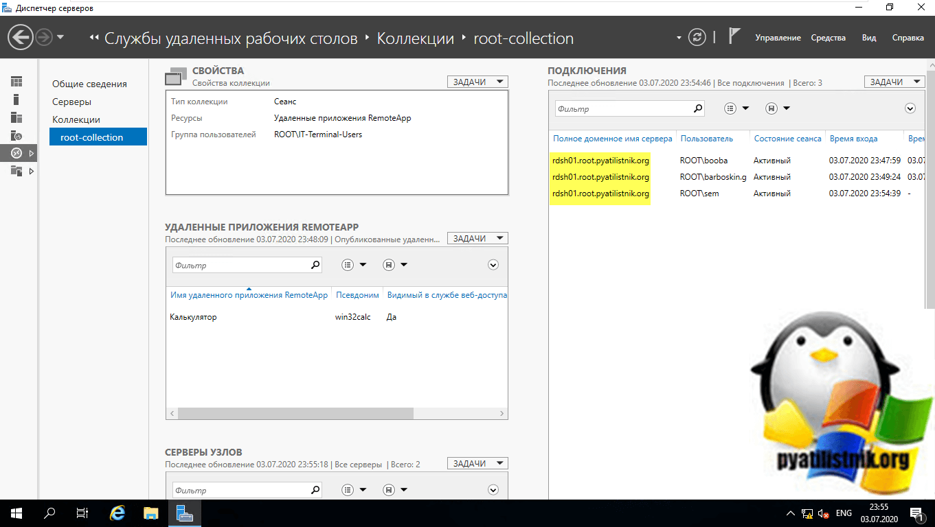 Но как и было задумано посредник подключений к удаленным рабочим столам перекину нас на конечный хост с ролью RDSH. Я для теста сделал три подключения, все отлично работает. Можно сказать, что мы успешно установили и настроили стандартную Remote Desktop Services ферму на базе Windows Server 2019. Теперь можно превращать ее в высоко доступную, о чем и пойдет речь ниже.