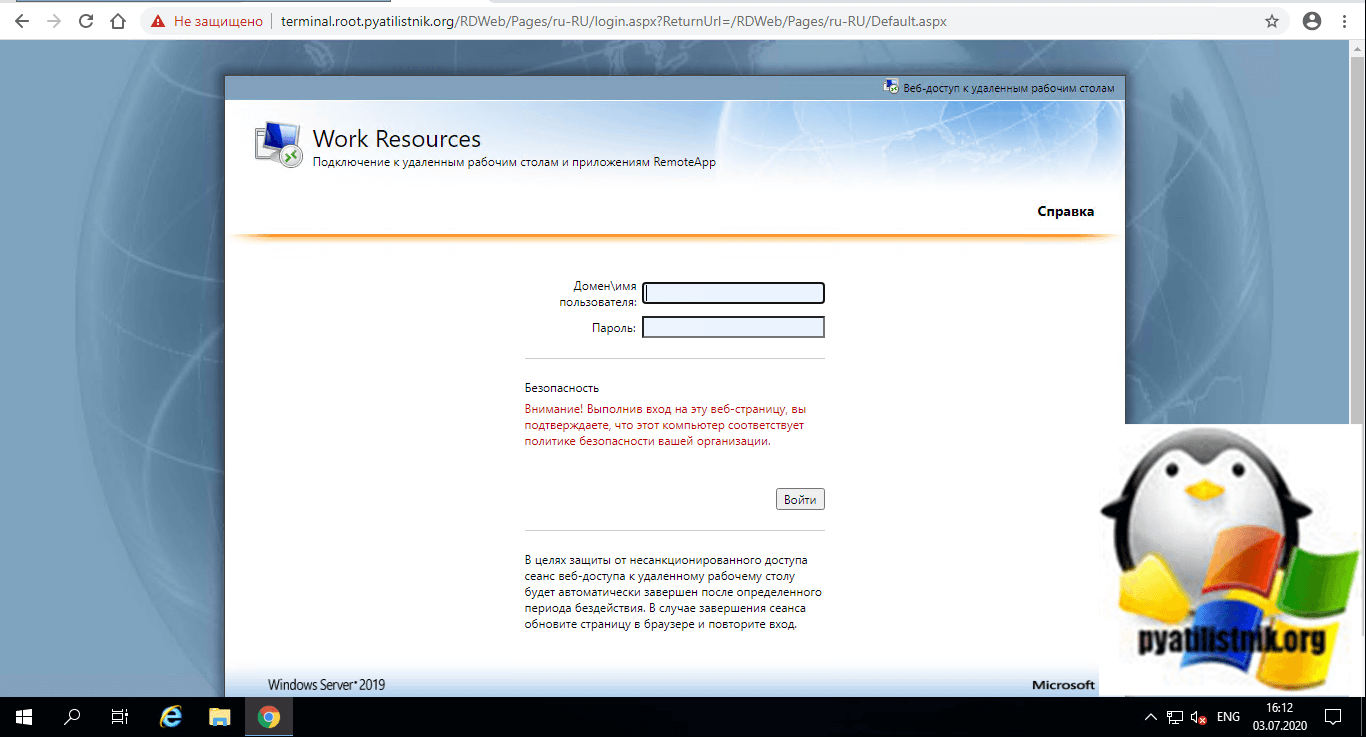 Напоминаю, что в моем тестовом окружении сервером веб-доступа к удаленным рабочим столам выступает брокер RDCB01.root.pyatilistnik.org