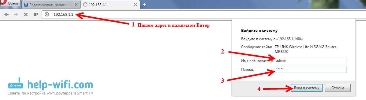 Роутер должен быть включен. Дальше на компьютере открываем любой браузер. Можно даже Internet Explorer, у меня Opera. Что бы зайти в настройки, нам в адресной строке браузера нужно написать IP-адрес роутера 192.168.1.1, или 192.168.0.1, и перейти по нему нажав кнопку Enter. Появится окно с запросом имени пользователя и пароля. Снова же, по умолчанию, как правило, используется admin и admin. Эту информацию вы так же можете увидеть снизу устройства.