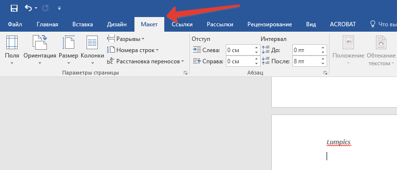 - далее кликнуть в инструментах на «Разметка страницы» — «Разрывы»;