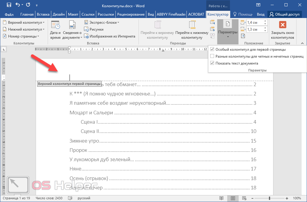 . Если же колонтитулы на четных и нечетных страницах отличаются, действия придется повторить для каждого типа страниц отдельно.