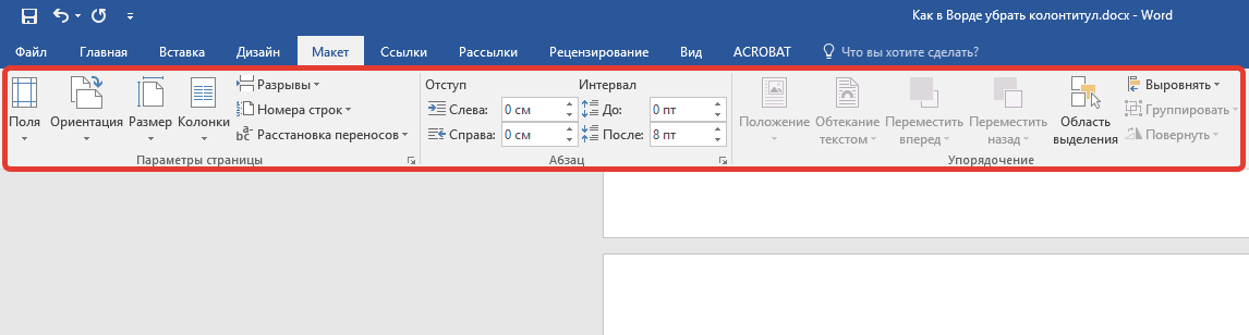 - Чтобы на определённой странице в Ворде убрать верхний колонтитул, нужно перейти в режим «Разметка страницы» (находится в верхнем меню программы).