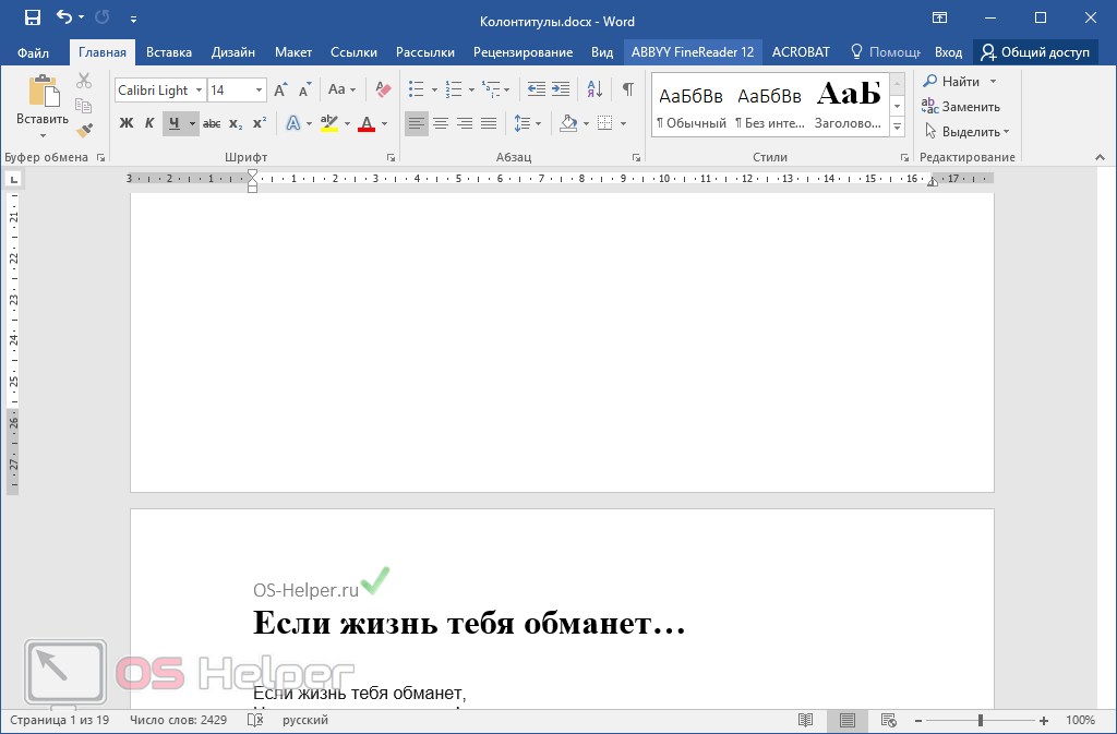 Пользоваться колонтитулами довольно просто. Для этого необходимо следовать следующим указаниям.